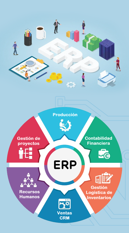 ERP (Enterprise Resource Planning) Los sistemas de planificación de recursos empresariales (ERP, por sus siglas en inglés, enterprise resource planning) son sistemas de información gerenciales que integran y manejan muchos de los negocios asociados con las operaciones de producción y de los aspectos de distribución de una compañía en la producción de bienes o servicios.
